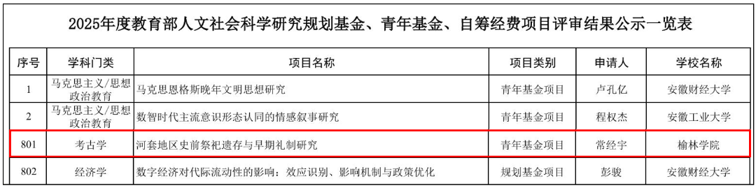 教育部人文社会科学研究项目是我国高校人文社科领域的高级别科研项目,旨在推动学术创新,服务国家战略和高等教育发展需要。该课题聚焦以榆林为中心的河套地区史前祭祀遗存,系统探究该区域文明起源的独特路径与礼制传统,及其在中华文明多元一体格局中的地位。课题的成功立项,体现了我校历史学专业坚持“扎根榆林、研究榆林、服务榆林、贡献榆林”的学科建设导向,有效提升了相关研究方向的学术影响力。