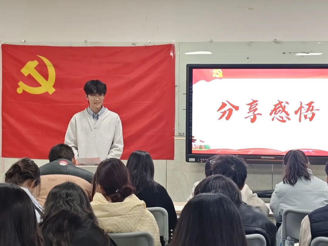 分享会上,高远航同志率先发言。杨家岭的简陋木桌与煤油灯,让他读懂“艰苦奋斗”是为目标全力以赴的执着;抗大“背包课堂”的照片,让他决心以“紧张”治拖延、以“团结”补不足;张思德的故事更让身为学生干部的他领悟,“为人民服务”就是把同学的小事做扎实。他寄语在场的党员们,作为三秦学子,脚下是革命摇篮的热土,肩上是历史嘱托与时代期望,唯有将延安精神转化为学习动力与人生坐标,才能在民族复兴征程中书写无悔篇章。