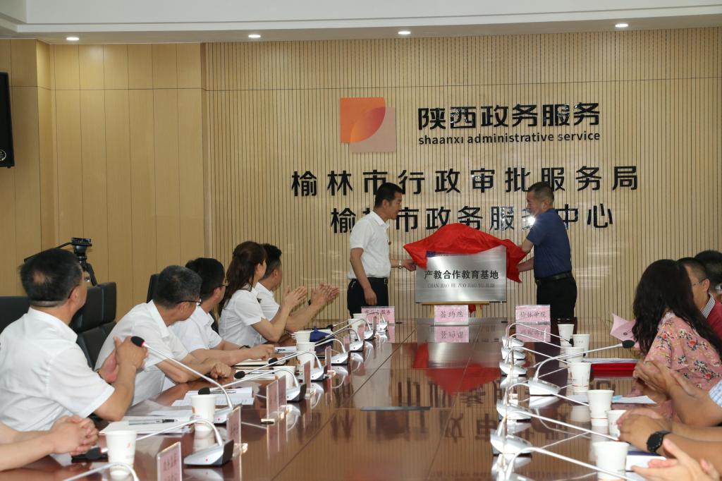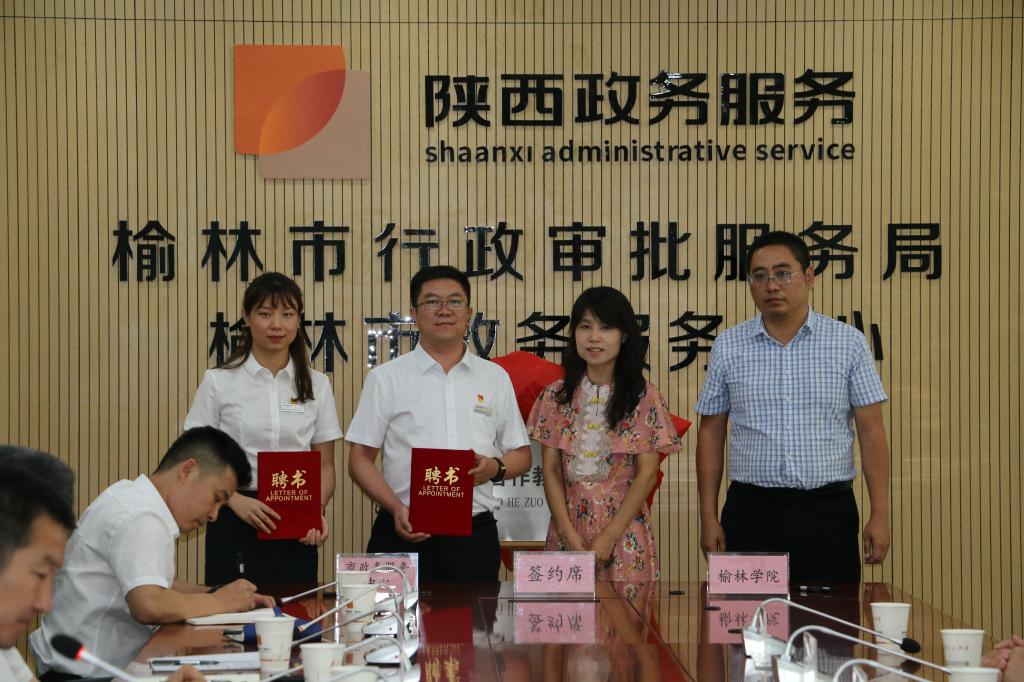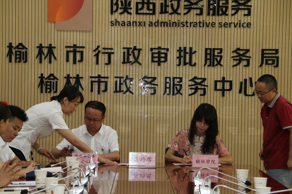 2021年7月16日下午2点30分,政法学院与榆林市政务服务中心在榆林市政务服务中心三楼会议室举行了行政管理专业产教合作与实践教学基地建设签约暨揭牌仪式。政法学院院长白炜、副院长李娜、副书记张国涛,榆林市行政审批服务局局长、党组书记韦福祥,榆林市政务服务中心主任冯涛,副主任李滨、徐香发、井好法以及各科室负责人、各驻厅窗口负责人和中心的业务骨干,政法学院行政管理专业部分教师和2019级行政管理专业实习生参加了签约与揭牌仪式。仪式由榆林市政务服务中心主任冯涛主持。