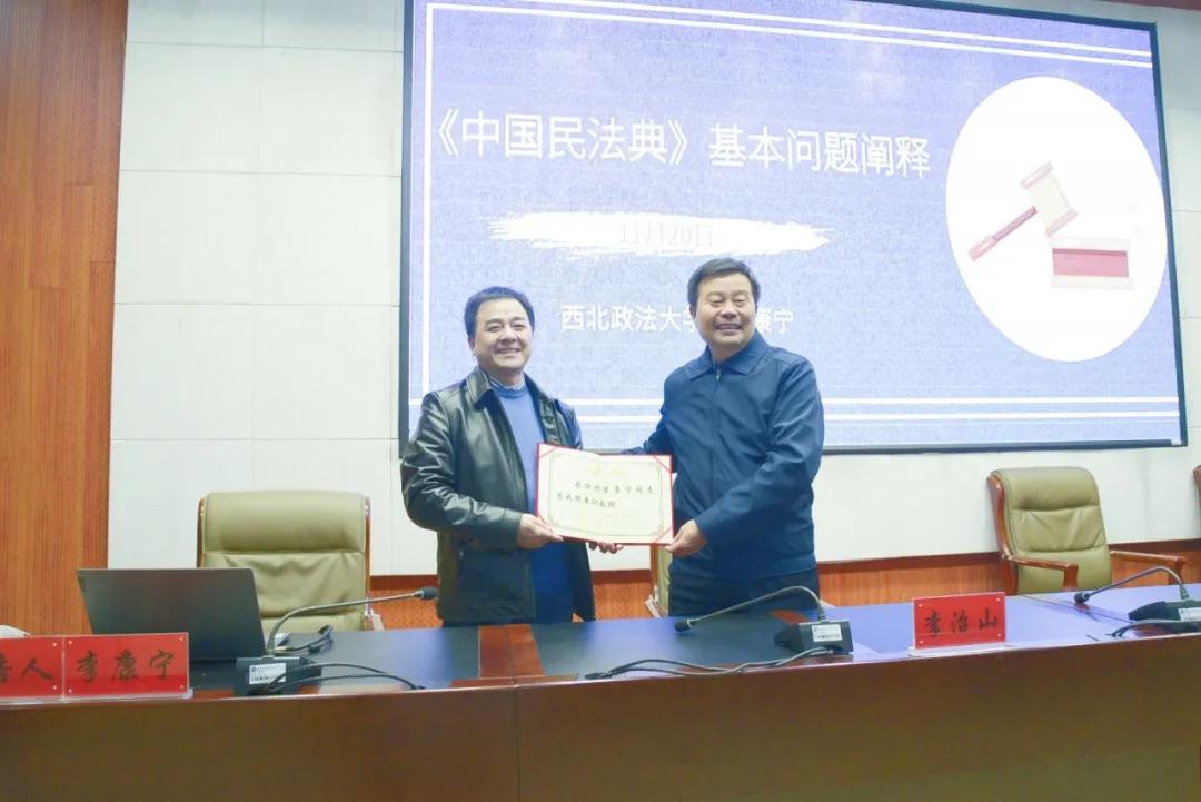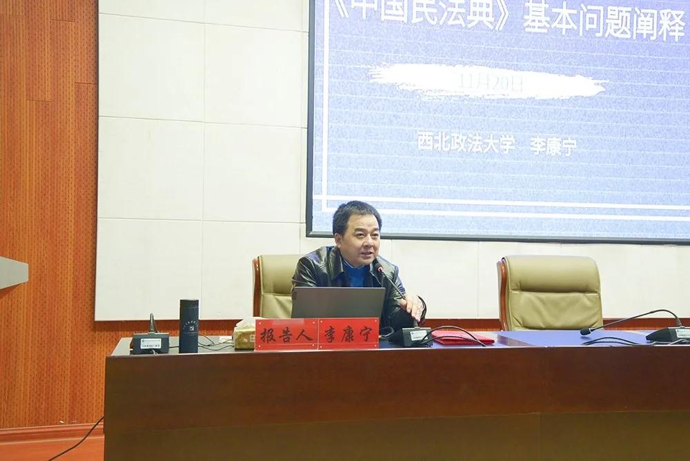 2020年11月20日下午,西北政法大学李康宁教授应邀在逸夫楼一楼报告厅做了题为“中国民法典基本问题阐释”的学术报告。法学教研室教师、18、19法学专业全体学生聆听了学术报告。政法学院院长白炜主持学术报告。