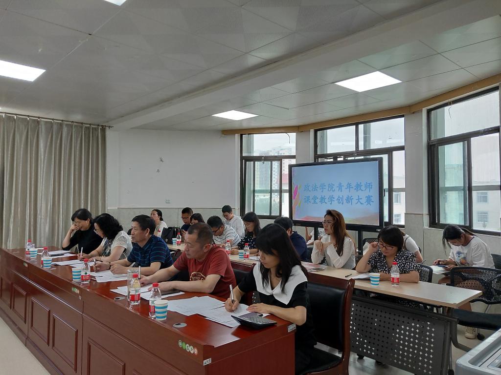 2020年6月22日,政法学院举行2020年青年教师讲课比赛,五个教研室(思政、历史、行管、法学、社工)推选出10位老师参赛。其中行管教研室在海宝主任带领下,6名老师全体参赛,社工教研室3名教师(邱韵、赵亚珠、张晓)积极参与,法学教研室张晶老师代表法学专业赛。院系邀请校督导组长王瑞斌老师与李秀萍老师担任本次活动的评委与指导教师。政法学院白炜院长,政法学院督导组长李红梅老师,教学副院长李娜老师担任评委。