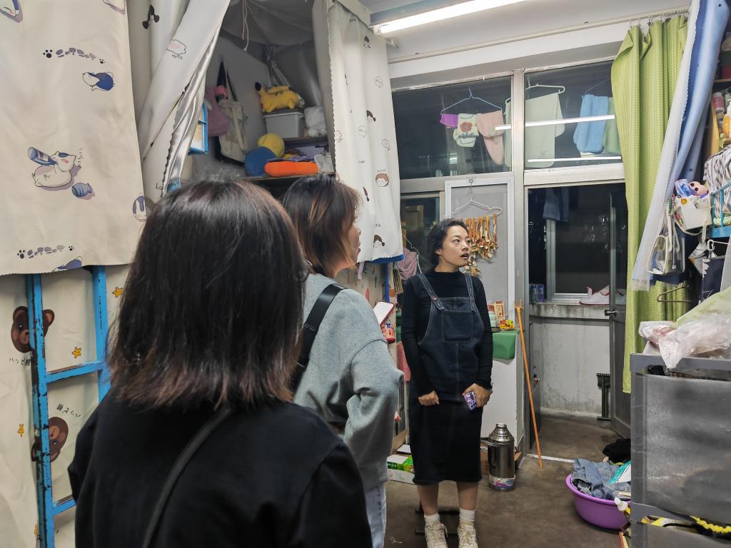走访过程中老师们同时对学生宿舍进行了安全排查。辅导员们认真且全面的对学生的用电安全等诸多方面进行了检查, 对发现的问题现场提出批评并予以整改,并且提醒同学们在疫情防控常态化期间,要高度重视宿舍的安全,安全用电,勤开窗通风,保持宿舍干净整洁,做好个人卫生防护。老师们指出,对于任何产生的困难,要及时找辅导员进行沟通处理,针对宿舍检查出的问题也要积极进行改进,营造温馨整洁的住宿环境。