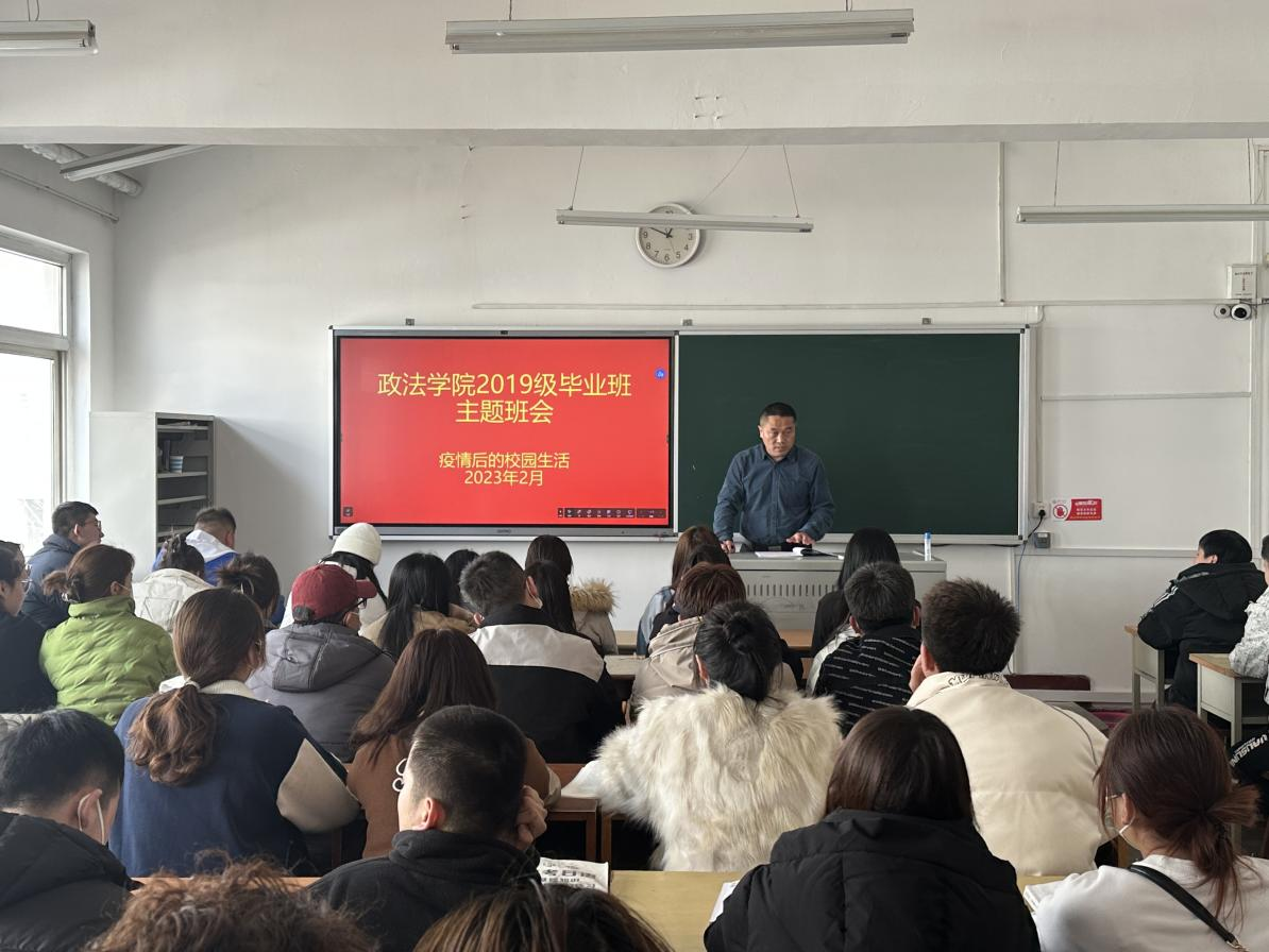 3月7日19法学班在3401开展“疫情后的校园生活”主题班会,郝浩强老师在班会最后告诉大家。要有进步的信心和决心。当你认真总结过去时,如果你感觉自己上学期在各方面表现都不错,请你千万不要骄傲,你应该在新学期再接再厉,争取取得更好的成绩,取得更大的进步。如果你发现自己有好多不足或问题的话,请你也不要太难受,更不能灰心丧气,你应该振奋精神,争取迎头赶上。面对失败,让我们铭记一位老者的话:一个人如果失败了,并不证明他永远完了;如果他认输了,并且退却了,那他才永远完了。不论怎样,老师都希望每位同学都有“我会比昨天更进步”的信心和决心。