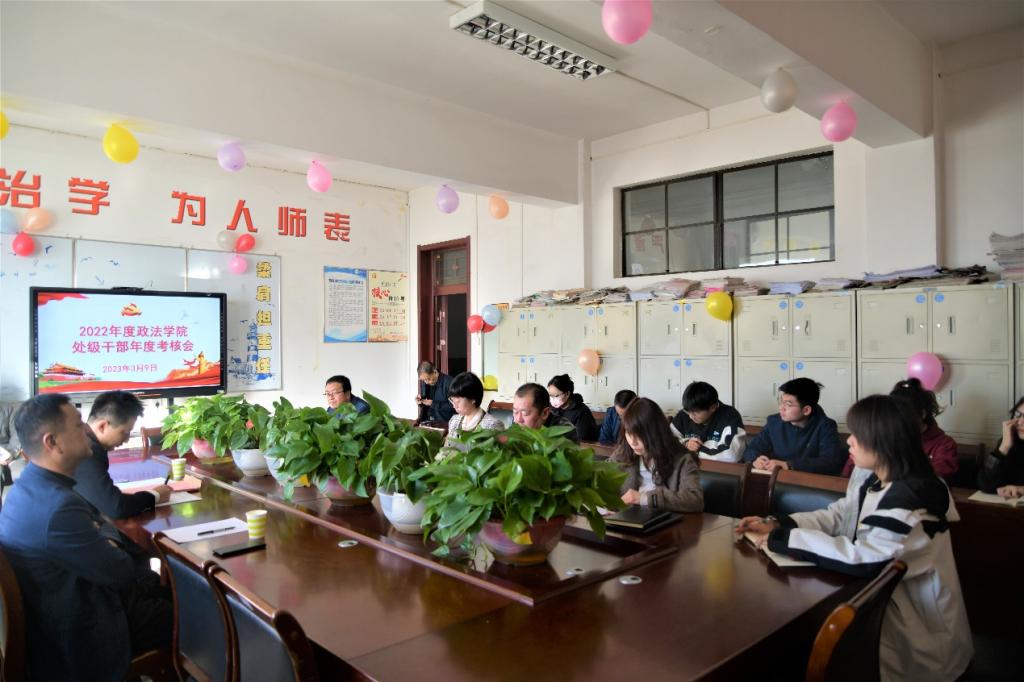 本次考核工作会,班子成员全面总结了政法学院2022年度工作,梳理了存在问题,明确了发展方向,统一了思想、凝聚了共识,营造了团结奋斗、积极向上的政法氛围,为政法学院高质量发展奠定了良好基础。