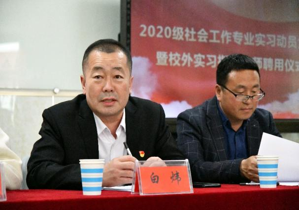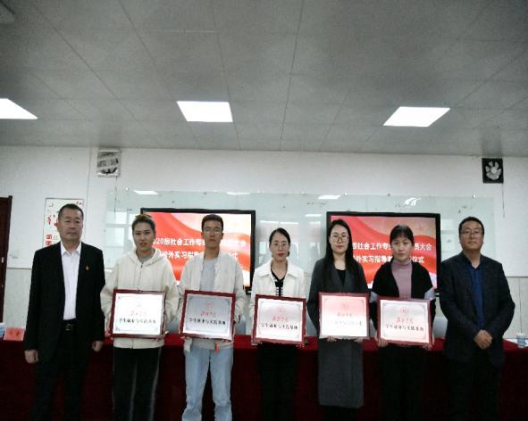 2023年5月10日下午14:30,社会工作专业在政法学院3407教室举行2020级实习动员大会暨校外实习指导老师聘用仪式。榆林市社区工作协会杨星星、榆林市青少年社工协会会长张旺、榆阳区双福社工主任魏李红、榆阳区善淼社会工作服务中心督导高媛蓉、榆阳区心智障碍康复教育中心主任曹瑞妮、榆阳区尚善社区治理社会工作服务中心负责人谢艳梅,政法学院院长白炜、政法学院党总支副书记何小红以及政法学院社会工作专业师生参加仪式。社会工作专业教研室主任邱韵主持仪式。