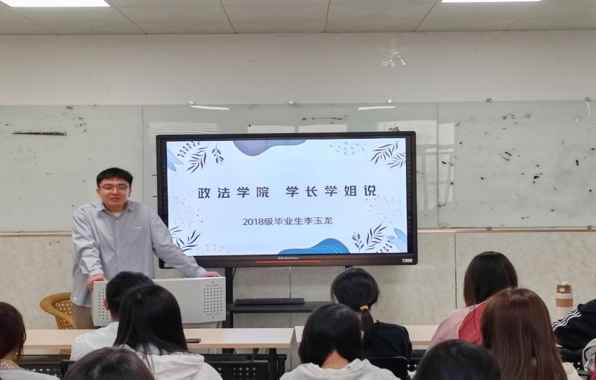 政法人互伴成长,用我的成长故事,启迪你的人生智慧。学长学姐说第二期开讲啦!2024年4月7日下午我院邀请2018级法学专业优秀毕业生李玉龙返校与2023级法学本科班同学座谈。