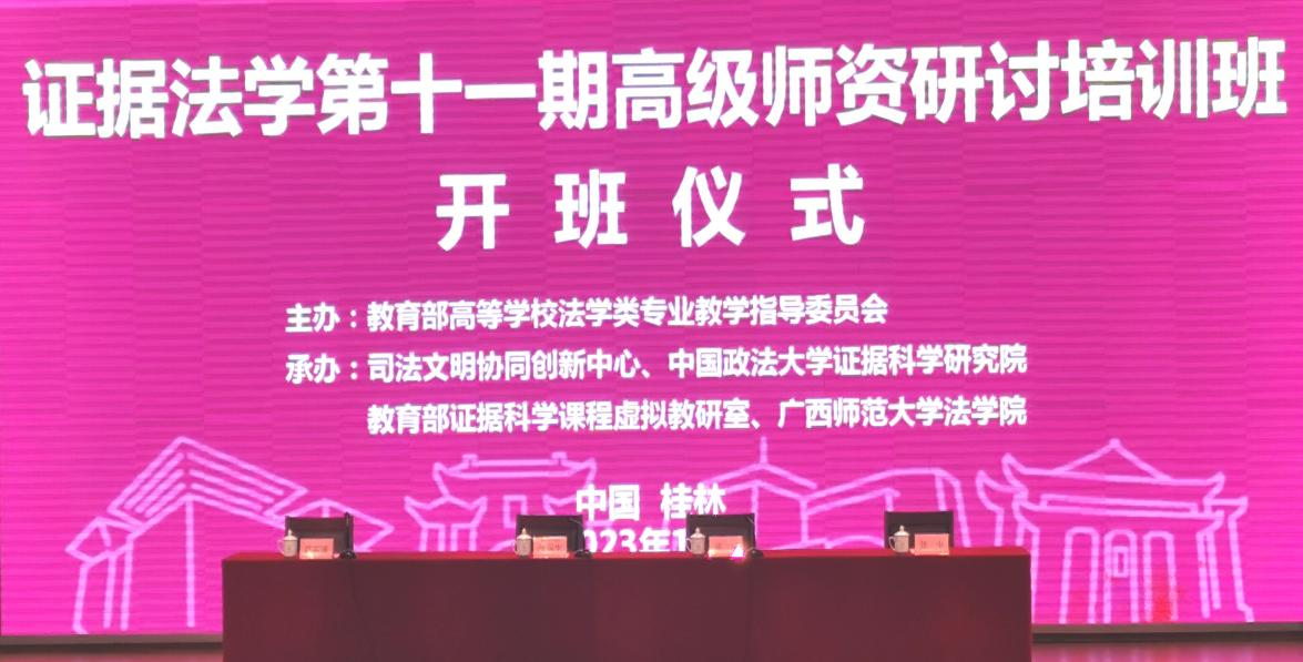 2023年11月13日至17日,教育部高等学校法学类专业教学指导委员会证据法学高级师资研讨培训在广西师范大学举行,有来自全国三十余所高校的法学专业学科负责人及教师参加了研讨培训,我院副院长赵勇宾教授参加了本次研讨培训活动。