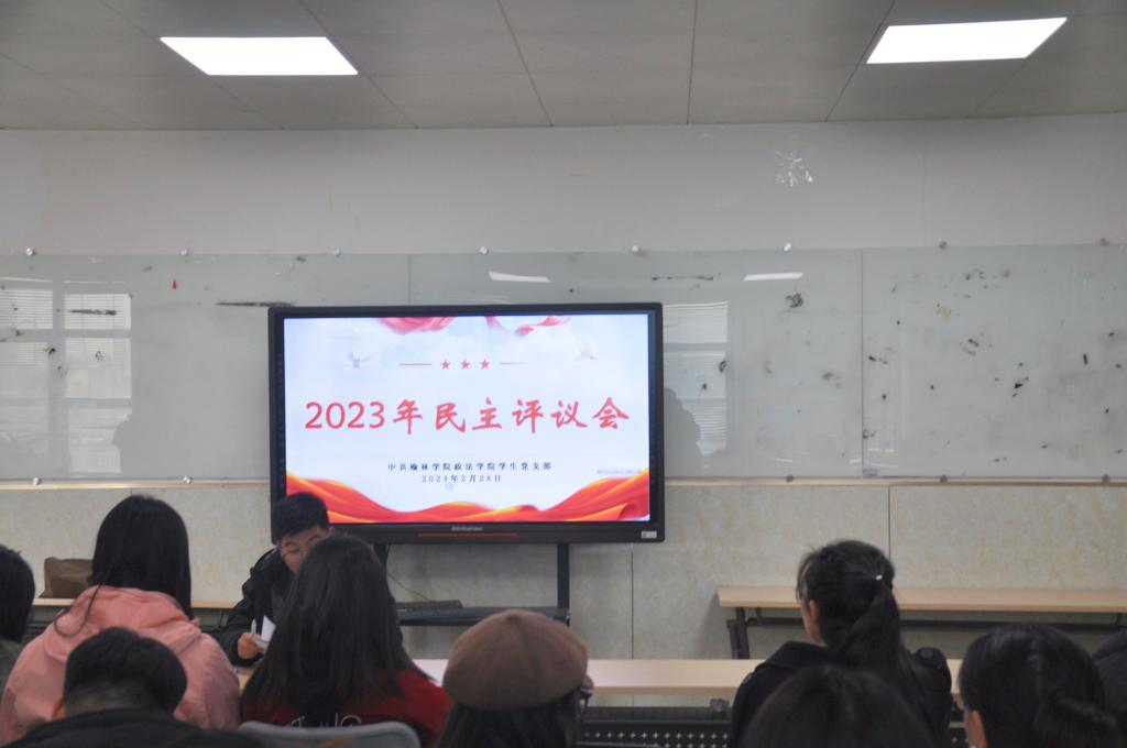 为深入学习习近平新时代中国特色社会主义思想,全面贯彻落实全面从严治党,完善党员民主评议机制,充分发挥党员先锋模范作用,2024年2月28日,学生党支部召开了民主评议党员大会,会议由学生党支部副书记吕猛主持,全体学生党员参加本次会议。