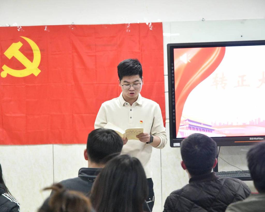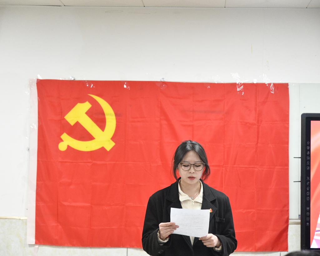 最后,党总支副书记何小红向新加入的3名中共正式党员表示祝贺。并向所有学生党员提出殷切的希望和要求,强调只有“艰难困苦”,方能“玉汝于成”,在漫漫新征程上,要坚持“敢”字当头,以越是艰险越向前的刚健勇毅,扛起新时代青年的青春责任。