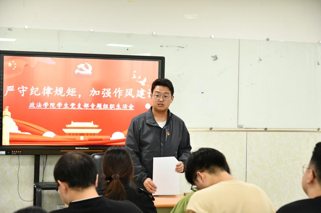 2022年10月2日上午,政法学院学生党支部于3407召开“严守纪律规矩、加强作风建设”专题组织生活会,学生党支部全体成员参会。会议由党支部书记李瑞瑞主持。