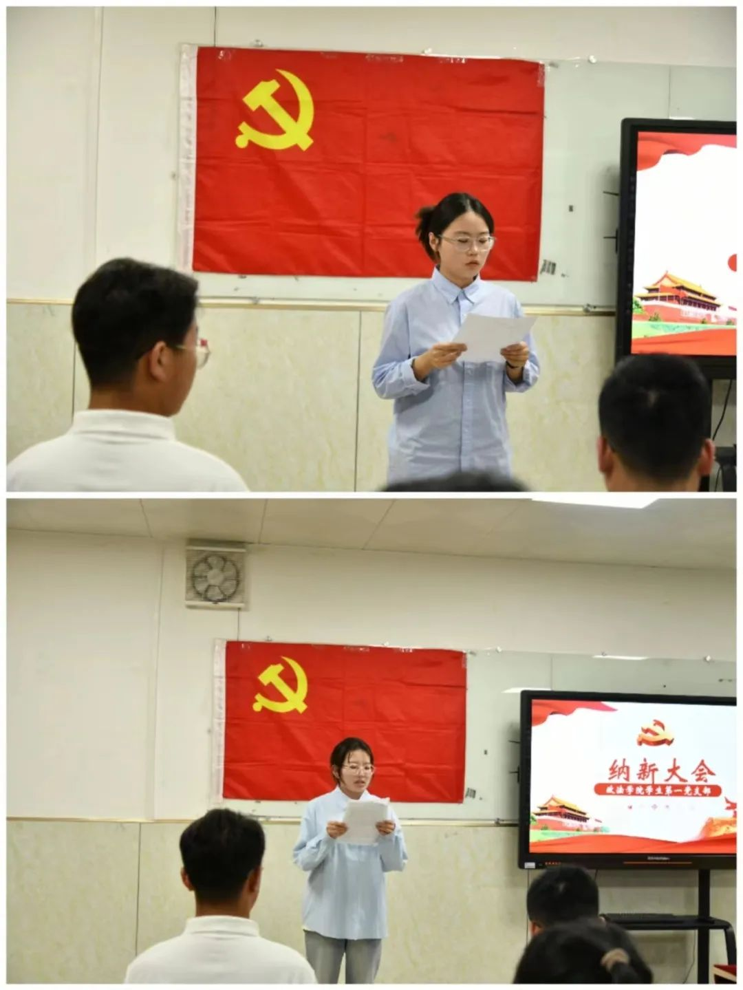 为扎实做好年度党建工作,进一步加强高校基层党组织建设,确保党员发展质量,政法学院学生第一党支部于2023年6月11日在3407召开支部纳新大会,讨论决定接收刘嘉仪等10名发展对象为中共预备党员事宜。学生第一党支部全体党员参会、学生第一党支部书记李瑞瑞出席会议,会议由学生第一党支部副书记王星泽主持。