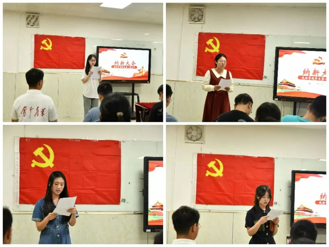 会议伊始,全体肃立,面向党旗奏唱《中华人民共和国国歌》、《国际歌》,在庄严肃穆的歌声中,纳新大会拉开帷幕。