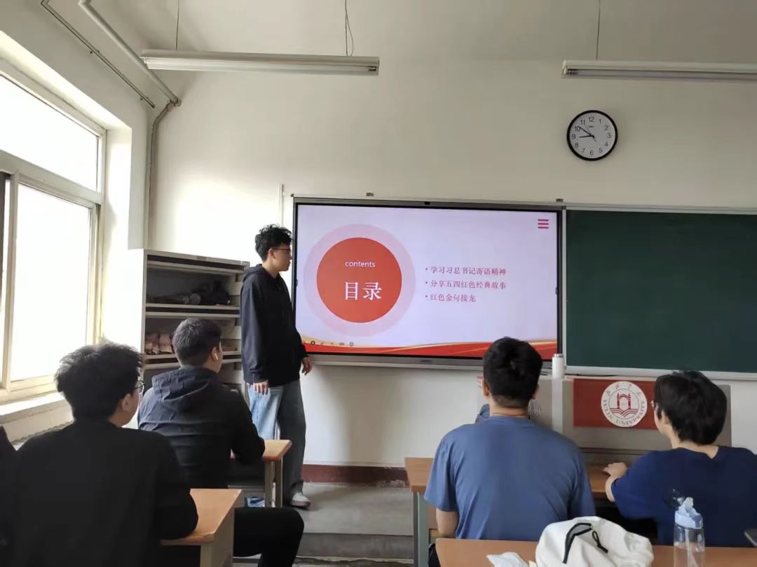 在分享五四红色经典故事环节,同学们讲述了五四运动中青年学生的英勇抗争事迹,以及革命先辈在新民主主义革命时期为国家独立和民族解放而奋斗的故事。这些故事让大家仿佛回到那个激情燃烧的岁月,深刻体会到五四精神“爱国、进步、民主、科学”的核心内涵,认识到五四精神是代代相传的青春力量,激励着每一代青年为国家发展奋勇向前。