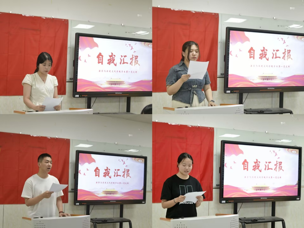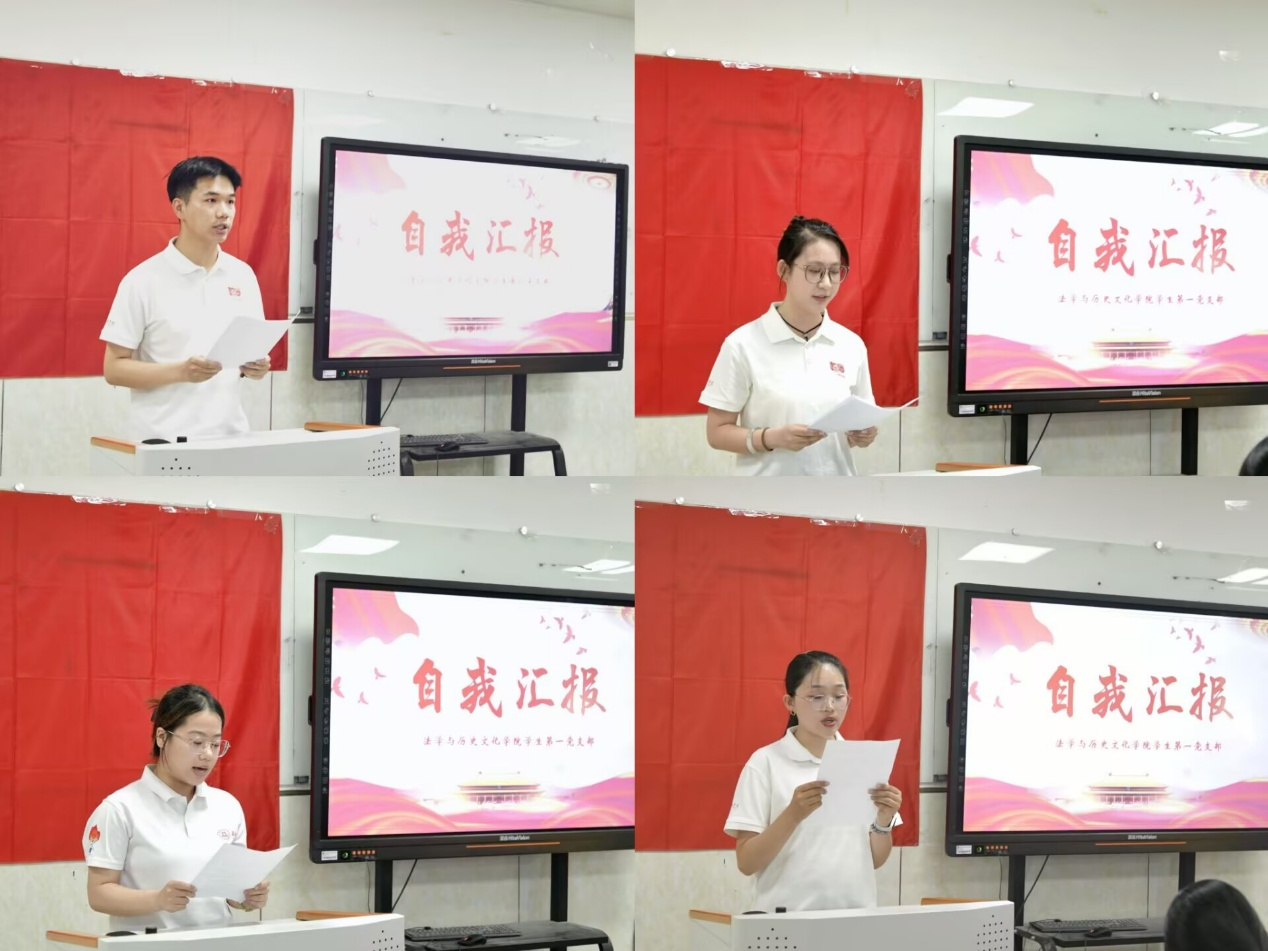 会议第二项,曾珺浩、刘力荧、王静雪、华潇雅、陈倩玉、刘俊爽、潘朔、刘彦茹八名发展对象分别向大会汇报考察期间思想动态、存在的不足以及努力奋斗的方向,并表示在今后的学习生活中一定以党员的标准严格要求自己,争取得到党组织的认可。