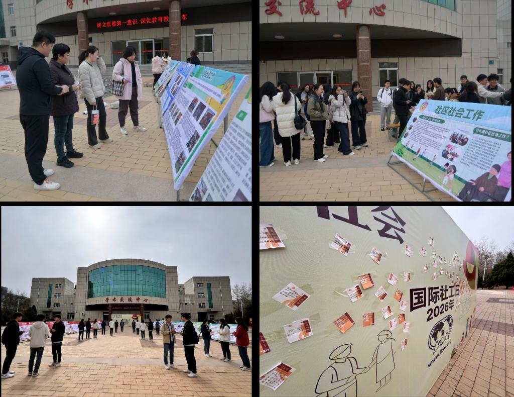 2026 年 3 月 17 日,榆林大学社会工作教研室在学校学术交流中心广场隆重举办国际社工日“以希望及和谐 永续幸福社会”主题宣传活动。活动以展台展示、现场互动讲解为主要形式,紧扣年度国际社工日核心主题,全方位呈现榆林大学社会工作专业的办学成果、教学科研实力与人才培养成效。此次活动成功搭建起社会工作专业与社会大众沟通的桥梁,既充分彰显榆林大学社工专业的办学实力与责任担当,有效提升社会工作的社会知晓度。