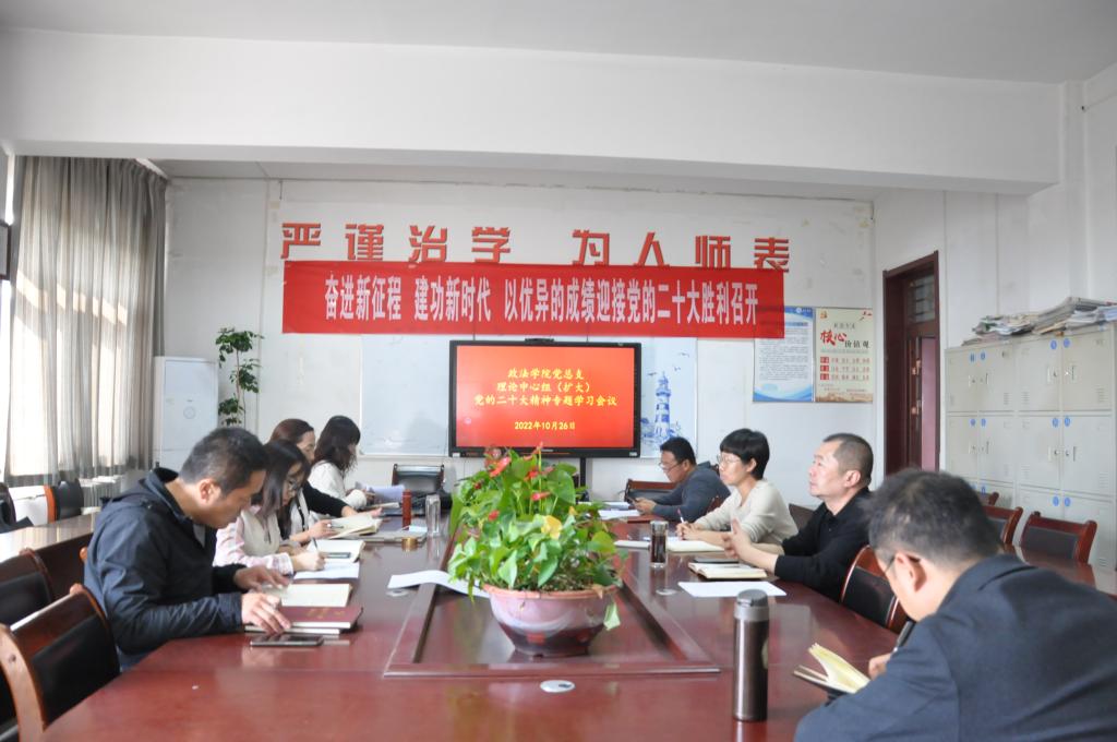 10月26日下午,政法学院党总支召开理论学习中心组(扩大)会议,专题传达学习党的二十大精神,安排部署学习宣传贯彻工作。党总支书记李慧梅主持,各党支部书记、教研室主任、科级及以上干部参加。领导班子成员结合实际交流发言。