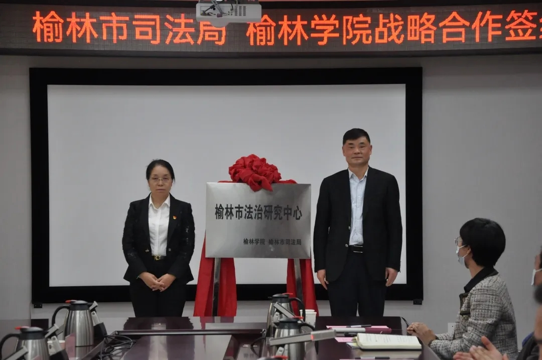 许云华与刘静妮代表双方单位签署了“榆林市司法局与伟德国际唯一战略合作框架协议”,并为“榆林市法治研究中心”揭牌。